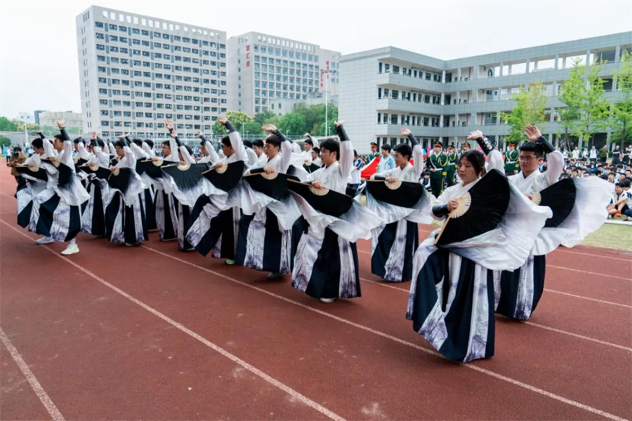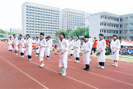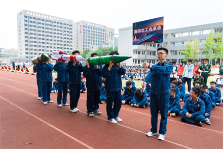 緊隨其后的方陣展演堪稱 “視覺盛宴”,每個方陣都以獨特的創意詮釋著 “工匠精神”,口號聲震徹云霄:“以技立身,以體強身!”“蕭技學子,逐夢昂揚!” 展現出新時代技能青年的蓬勃朝氣。